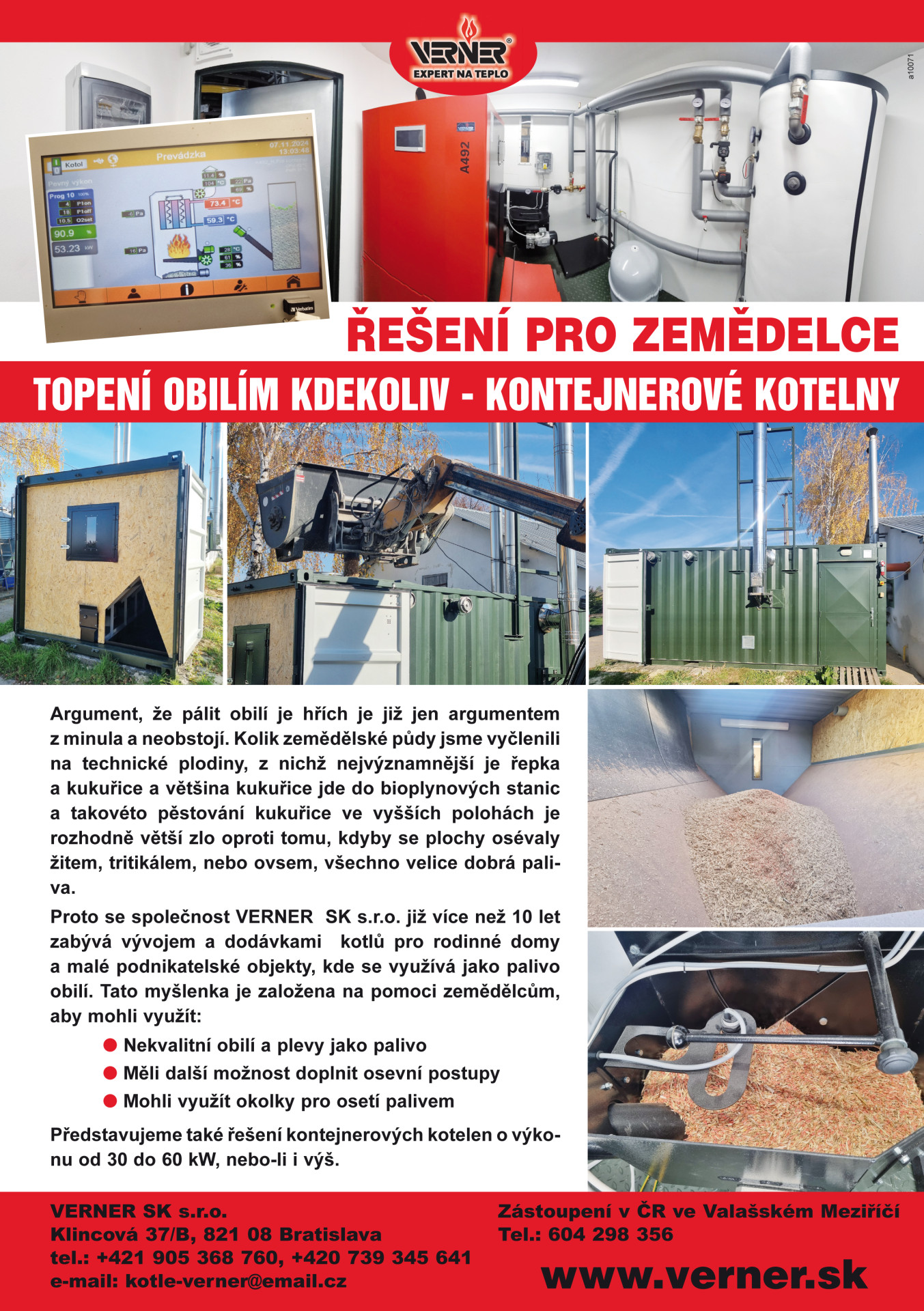 Pro větší objekty nad 50 kW do 250 kW (penziony, školy, firmy, bytové domy apod.) a hlavně pro zemědělce doporučujeme vytápění automatickým kotlem nebo kaskádou automatických kotlů VERNER A492 a VERNER A602 na pelety, agropelety a obilí. Pro penziony a restaurace dále doporučujeme instalaci interiérového kotle značky VERNER, které dokáží zajistit nejen tepelnou pohodu, ale zatraktivní interiér a zpříjemní hostům pobyt.